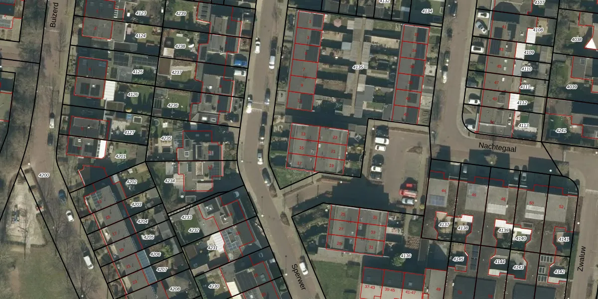 Het perceel waarop Sperwer 15 staat heeft een oppervlakte van 2434 m². Dit is een zeer groot perceel. De perceeloppervlakte wordt geregistreerd door het Kadaster. Gedetailleerde informatie over de maten van dit perceel kunt u vinden in het rapport Kadastrale kaart met maatvoering van Sperwer 15.