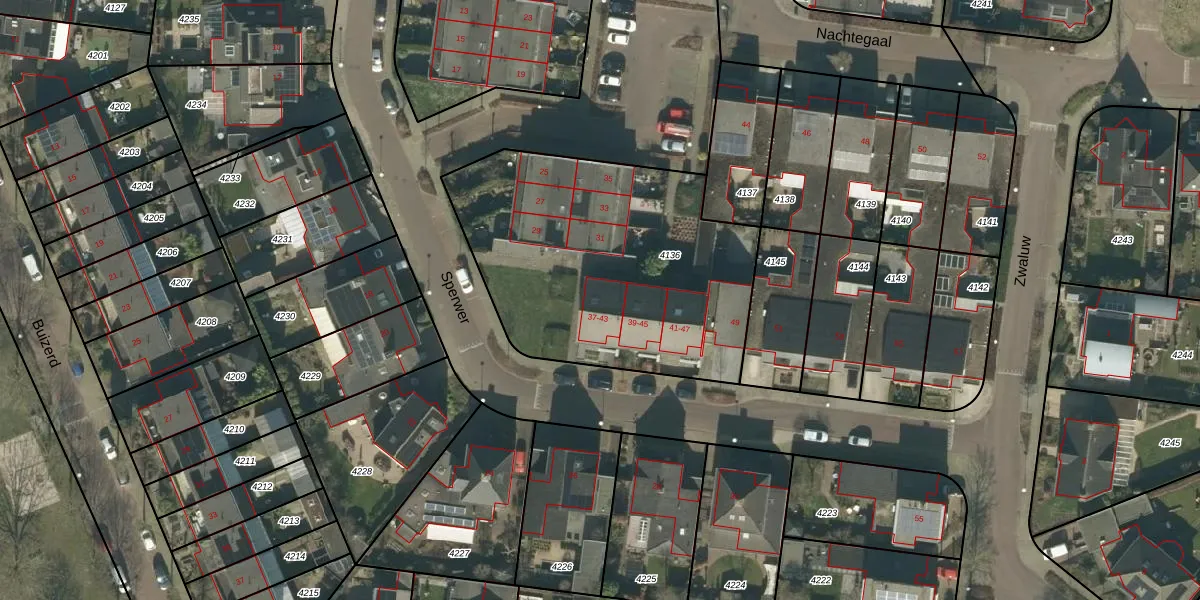 Sperwer 43 is gelegen op kadastraal perceel ODR01H4136. Deze kadastrale aanduiding is uniek en wordt gebruikt door het Kadaster om eigendomsrechten en andere zakelijke rechten vast te leggen. Het perceel maakt onderdeel uit van de kadastrale gemeente Sint Oedenrode.
