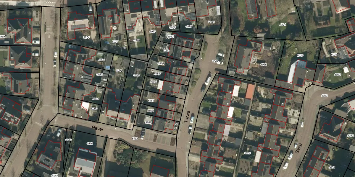 Het perceel waarop Tarwe 7 staat heeft een oppervlakte van 199 m². Dit is een middelgroot perceel. De perceeloppervlakte wordt geregistreerd door het Kadaster. Gedetailleerde informatie over de maten van dit perceel kunt u vinden in het rapport Kadastrale kaart met maatvoering van Tarwe 7.