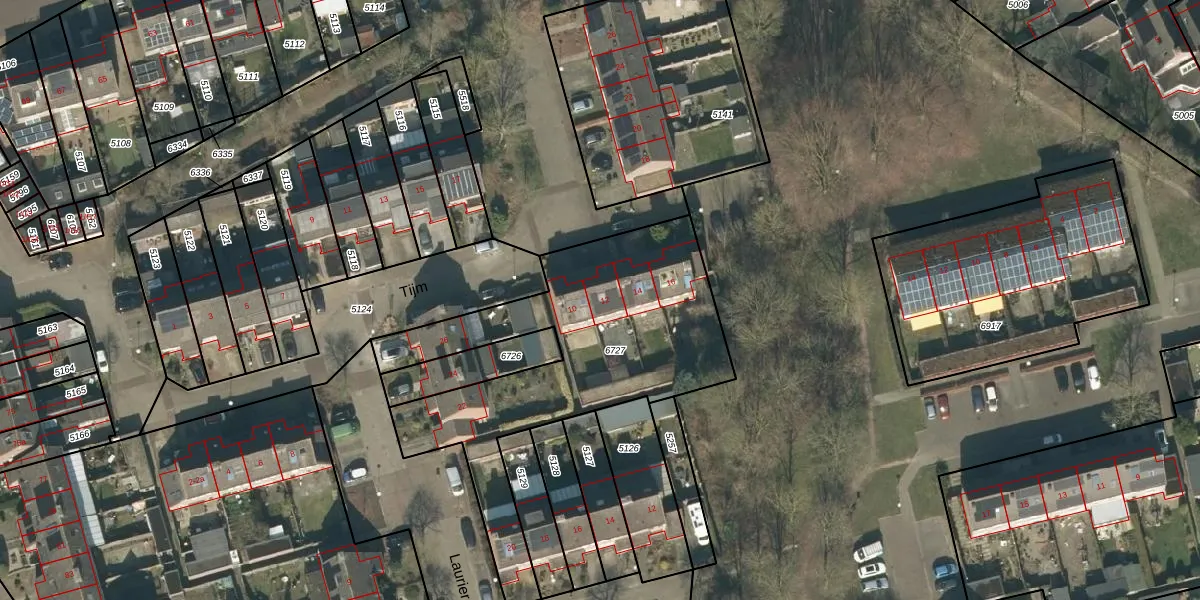 Het perceel waarop Tijm 12 staat heeft een oppervlakte van 1358 m². Dit is een zeer groot perceel. De perceeloppervlakte wordt geregistreerd door het Kadaster. Gedetailleerde informatie over de maten van dit perceel kunt u vinden in het rapport Kadastrale kaart met maatvoering van Tijm 12.