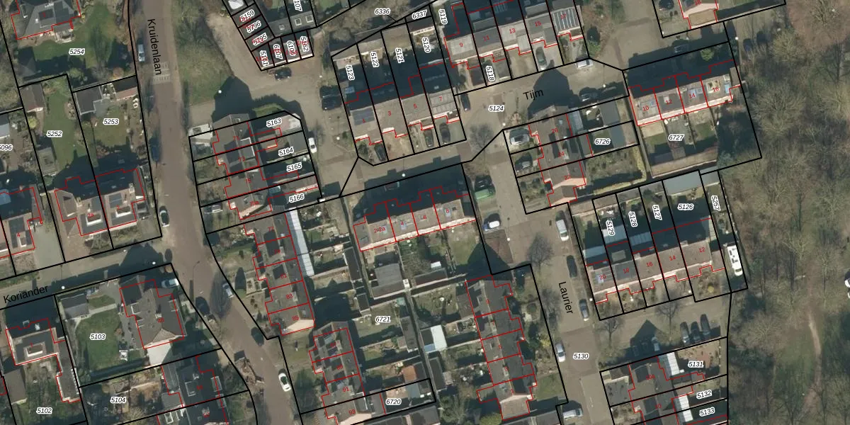 Tijm 6 is gelegen op kadastraal perceel ODR01I6721. Deze kadastrale aanduiding is uniek en wordt gebruikt door het Kadaster om eigendomsrechten en andere zakelijke rechten vast te leggen. Het perceel maakt onderdeel uit van de kadastrale gemeente Sint Oedenrode.