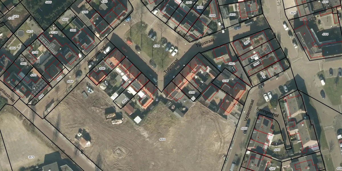 Het perceel waarop Tulpstraat 18 staat heeft een oppervlakte van 6590 m². Dit is een zeer groot perceel. De perceeloppervlakte wordt geregistreerd door het Kadaster. Gedetailleerde informatie over de maten van dit perceel kunt u vinden in het rapport Kadastrale kaart met maatvoering van Tulpstraat 18.