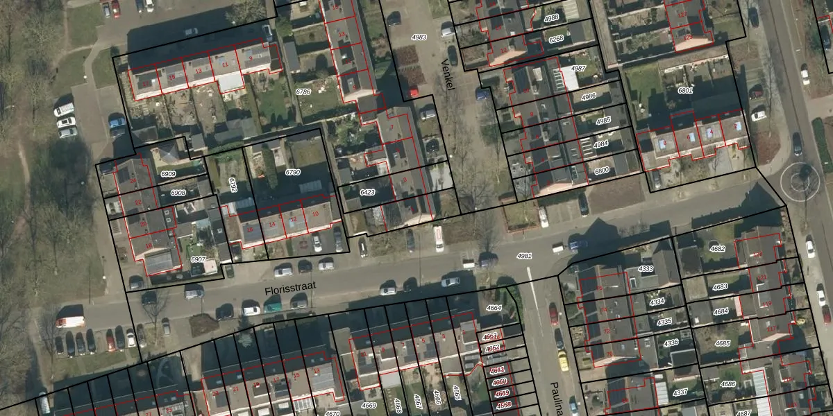 Het adres ligt op het perceel ODR01-I-6786, dat zich in de kadastrale gemeente Sint Oedenrode bevindt. Het perceel is kleiner dan gemiddeld in Sint Oedenrode. Het perceel is 2474 m² groot, terwijl het gemiddelde ligt op 5462,56 m². Het grootste perceel in de kadastrale gemeente is 66,4 ha. Het kleinste perceel heeft een oppervlakte van 0 m². Op het perceel liggen in totaal 12 adressen. De huidige grenzen van het perceel zijn digitaal in de Basisregistratie Kadaster (BRK) geregistreerd op 29-12-2011.