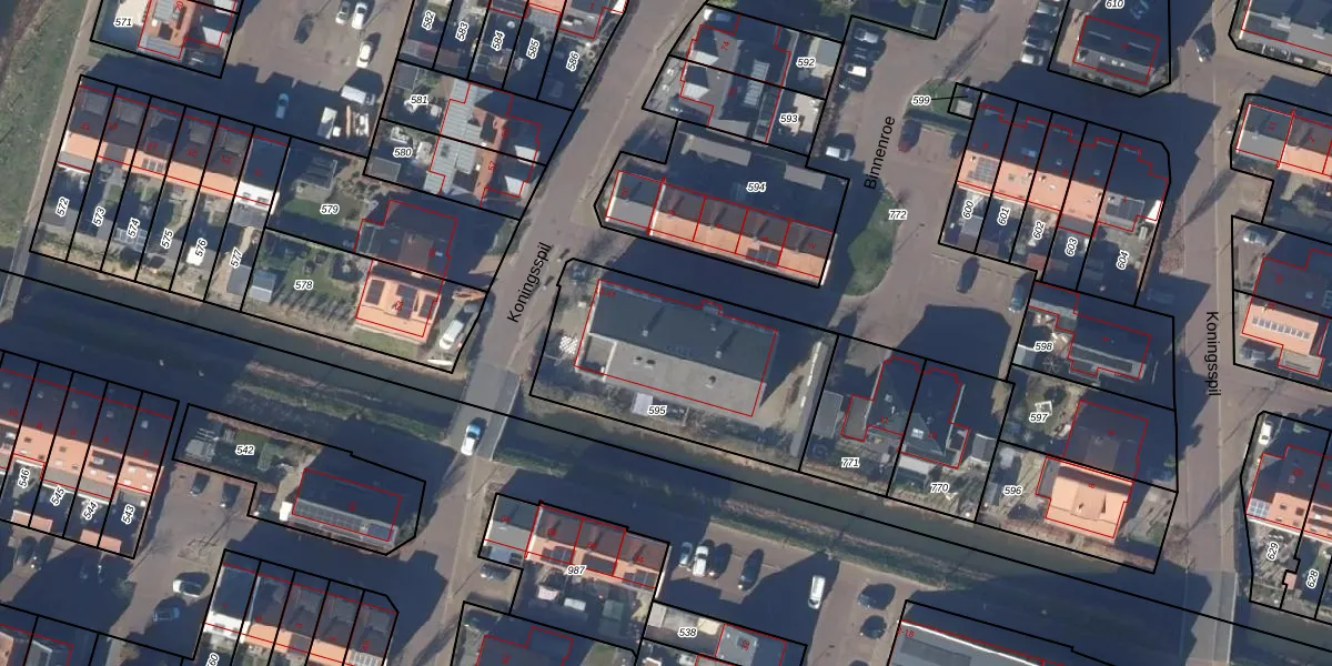 Het perceel waarop Binnenroe 25 staat heeft een oppervlakte van 905 m². Dit is een groot perceel. De perceeloppervlakte wordt geregistreerd door het Kadaster. Gedetailleerde informatie over de maten van dit perceel kunt u vinden in het rapport Kadastrale kaart met maatvoering van Binnenroe 25.
