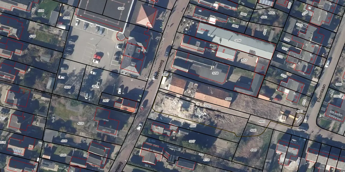 Bovenweg 73-B is gelegen op kadastraal perceel PCS00A4988. Deze kadastrale aanduiding is uniek en wordt gebruikt door het Kadaster om eigendomsrechten en andere zakelijke rechten vast te leggen. Het perceel maakt onderdeel uit van de kadastrale gemeente Sint Pancras.
