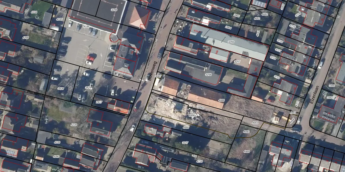 Bovenweg 75-B is gelegen op kadastraal perceel PCS00A4988. Deze kadastrale aanduiding is uniek en wordt gebruikt door het Kadaster om eigendomsrechten en andere zakelijke rechten vast te leggen. Het perceel maakt onderdeel uit van de kadastrale gemeente Sint Pancras.