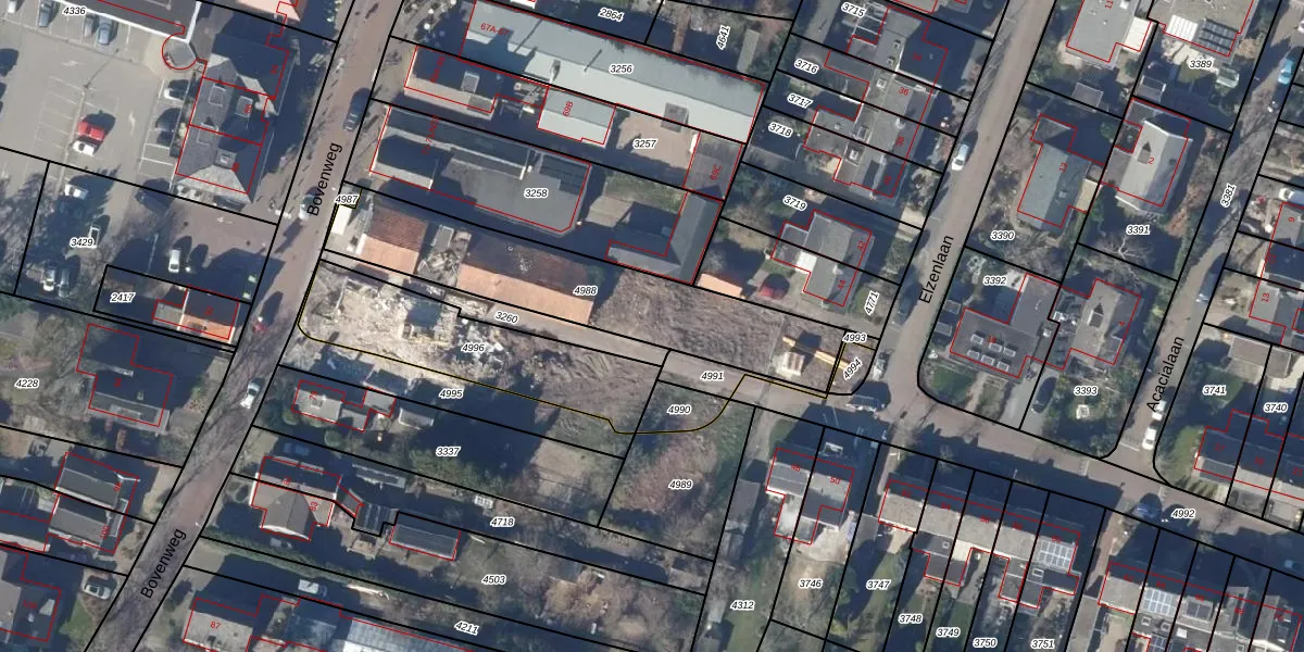 Het perceel waarop Bovenweg 75-H staat heeft een oppervlakte van 807 m². Dit is een groot perceel. De perceeloppervlakte wordt geregistreerd door het Kadaster. Gedetailleerde informatie over de maten van dit perceel kunt u vinden in het rapport Kadastrale kaart met maatvoering van Bovenweg 75-H.