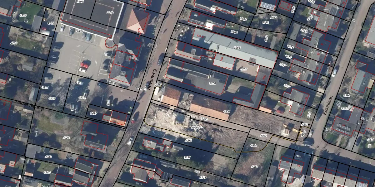 Bovenweg 77-C is gelegen op kadastraal perceel PCS00A4988. Deze kadastrale aanduiding is uniek en wordt gebruikt door het Kadaster om eigendomsrechten en andere zakelijke rechten vast te leggen. Het perceel maakt onderdeel uit van de kadastrale gemeente Sint Pancras.