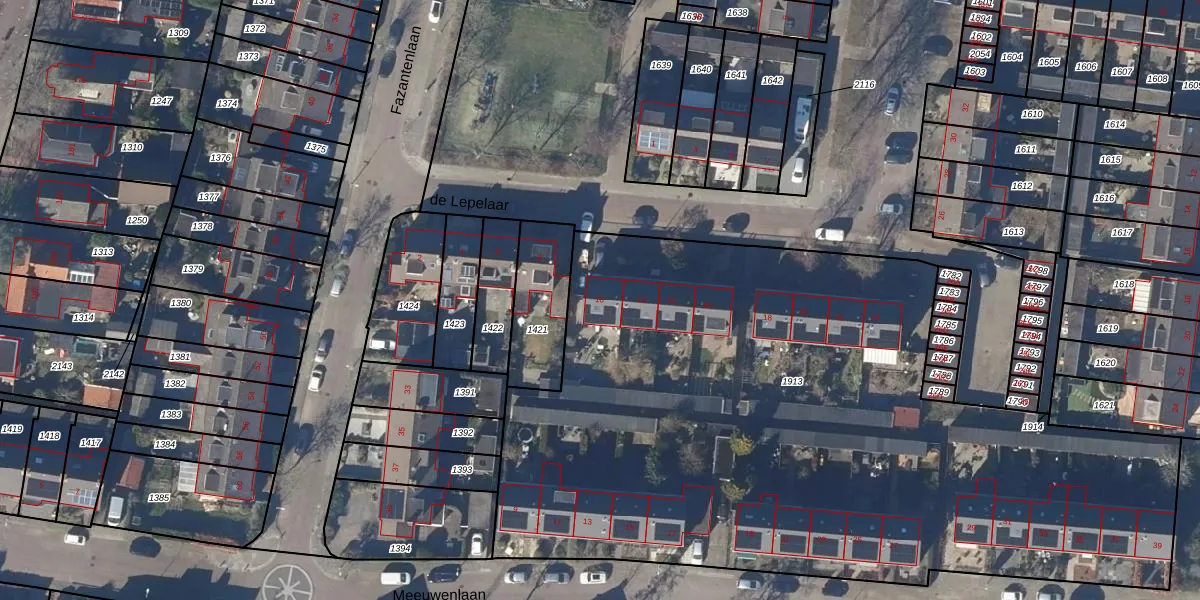 Het perceel waarop de Lepelaar 10 staat heeft een oppervlakte van 4684 m². Dit is een zeer groot perceel. De perceeloppervlakte wordt geregistreerd door het Kadaster. Gedetailleerde informatie over de maten van dit perceel kunt u vinden in het rapport Kadastrale kaart met maatvoering van de Lepelaar 10.