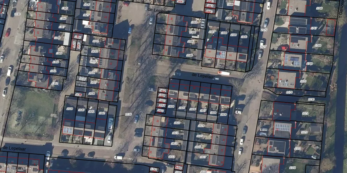 de Lepelaar 34 is gelegen op kadastraal perceel PCS00E1604. Deze kadastrale aanduiding is uniek en wordt gebruikt door het Kadaster om eigendomsrechten en andere zakelijke rechten vast te leggen. Het perceel maakt onderdeel uit van de kadastrale gemeente Sint Pancras.
