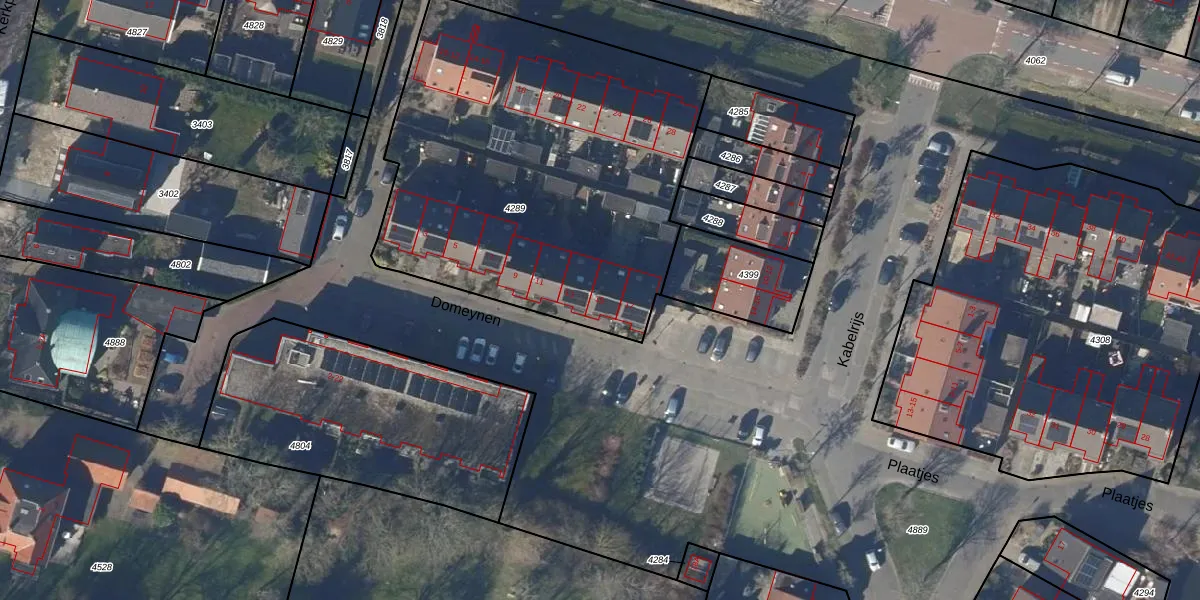 Domeynen 15 is gelegen op kadastraal perceel PCS00A4289. Deze kadastrale aanduiding is uniek en wordt gebruikt door het Kadaster om eigendomsrechten en andere zakelijke rechten vast te leggen. Het perceel maakt onderdeel uit van de kadastrale gemeente Sint Pancras.