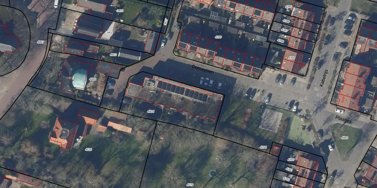 Domeynen 20 is gelegen op kadastraal perceel PCS00A4804. Deze kadastrale aanduiding is uniek en wordt gebruikt door het Kadaster om eigendomsrechten en andere zakelijke rechten vast te leggen. Het perceel maakt onderdeel uit van de kadastrale gemeente Sint Pancras.