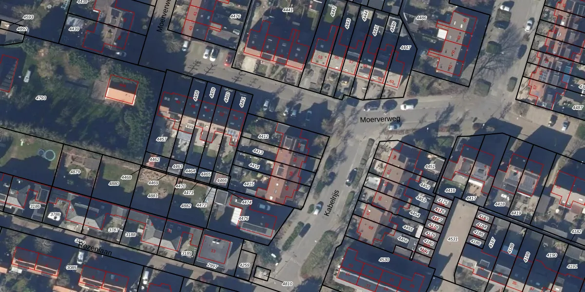 Kabelrijs 54 is gelegen op kadastraal perceel PCS00A4412. Deze kadastrale aanduiding is uniek en wordt gebruikt door het Kadaster om eigendomsrechten en andere zakelijke rechten vast te leggen. Het perceel maakt onderdeel uit van de kadastrale gemeente Sint Pancras.