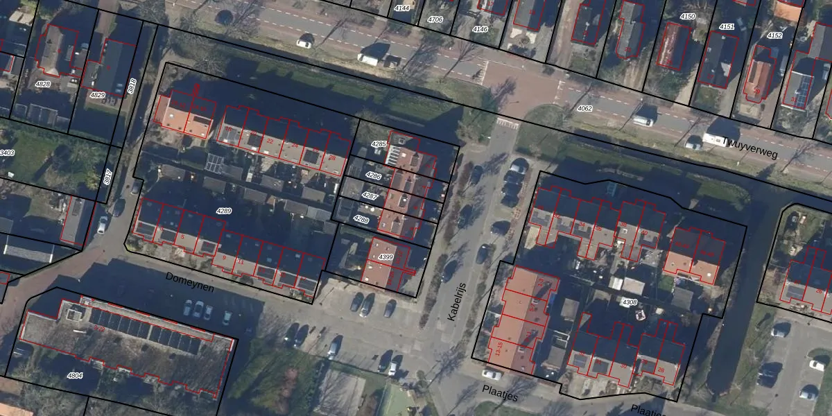 Gebruik de zoekbalk of klik op een perceel voor informatie over de adressen binnen dit perceel.