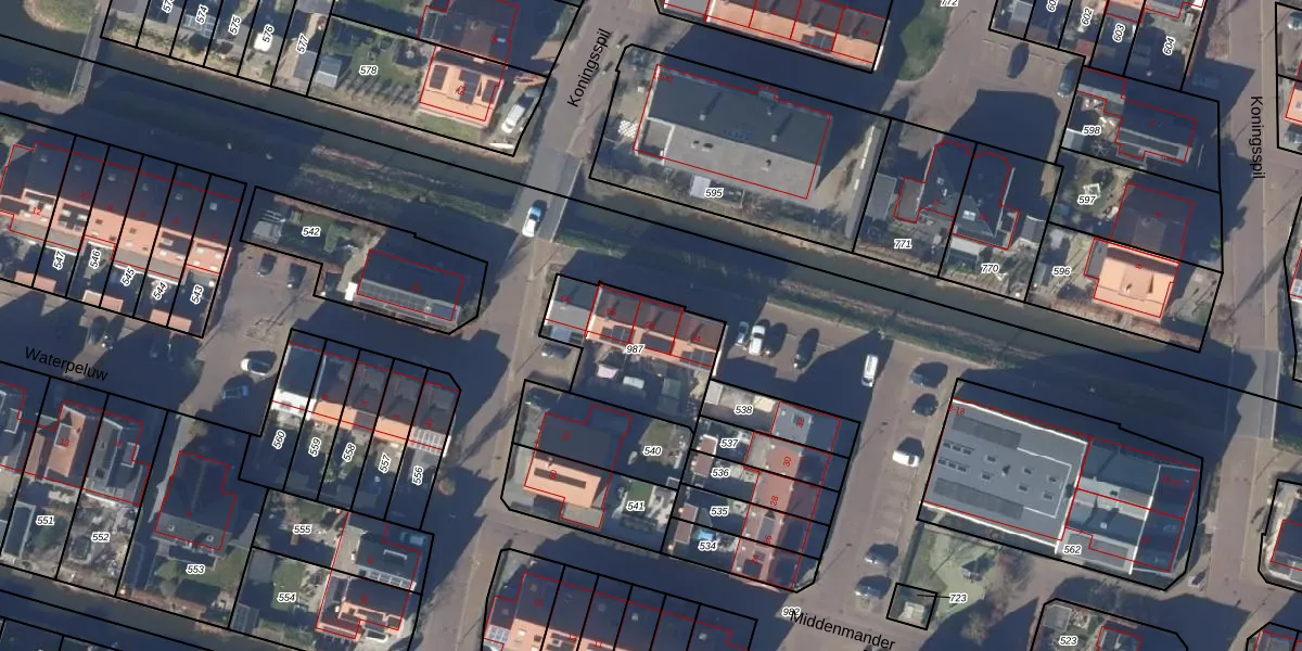 Het perceel waarop Koningsspil 68 staat heeft een oppervlakte van 417 m². Dit is een groot perceel. De perceeloppervlakte wordt geregistreerd door het Kadaster. Gedetailleerde informatie over de maten van dit perceel kunt u vinden in het rapport Kadastrale kaart met maatvoering van Koningsspil 68.
