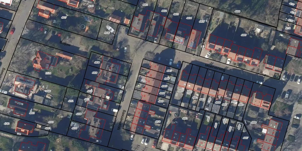 Moerverweg 29 is gelegen op kadastraal perceel PCS00A4966. Deze kadastrale aanduiding is uniek en wordt gebruikt door het Kadaster om eigendomsrechten en andere zakelijke rechten vast te leggen. Het perceel maakt onderdeel uit van de kadastrale gemeente Sint Pancras.