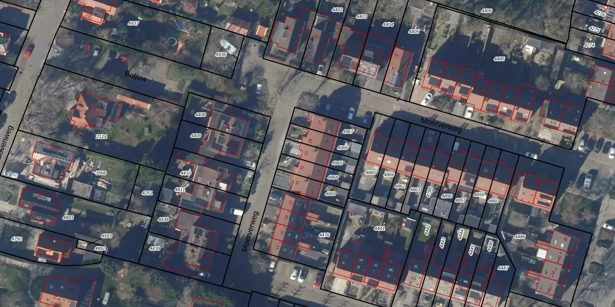 Moerverweg 31 is gelegen op kadastraal perceel PCS00A4965. Deze kadastrale aanduiding is uniek en wordt gebruikt door het Kadaster om eigendomsrechten en andere zakelijke rechten vast te leggen. Het perceel maakt onderdeel uit van de kadastrale gemeente Sint Pancras.