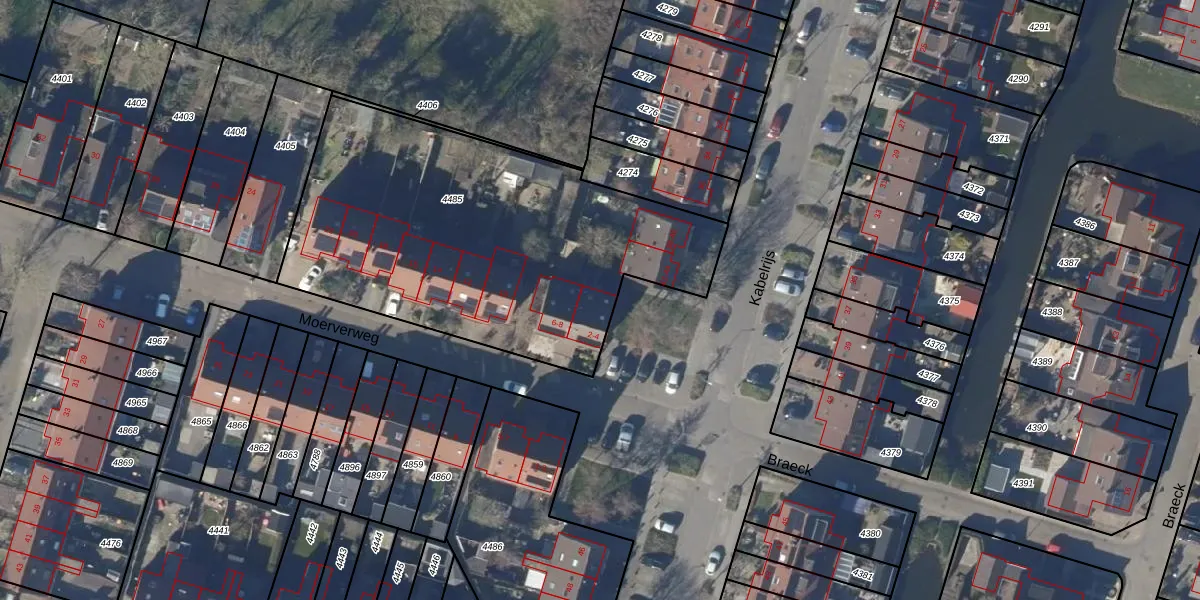 Moerverweg 4 is gelegen op kadastraal perceel PCS00A4485. Deze kadastrale aanduiding is uniek en wordt gebruikt door het Kadaster om eigendomsrechten en andere zakelijke rechten vast te leggen. Het perceel maakt onderdeel uit van de kadastrale gemeente Sint Pancras.
