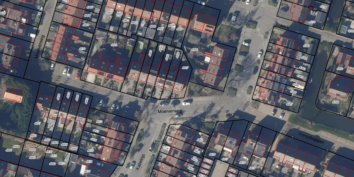 Moerverweg 63 is gelegen op kadastraal perceel PCS00A4447. Deze kadastrale aanduiding is uniek en wordt gebruikt door het Kadaster om eigendomsrechten en andere zakelijke rechten vast te leggen. Het perceel maakt onderdeel uit van de kadastrale gemeente Sint Pancras.
