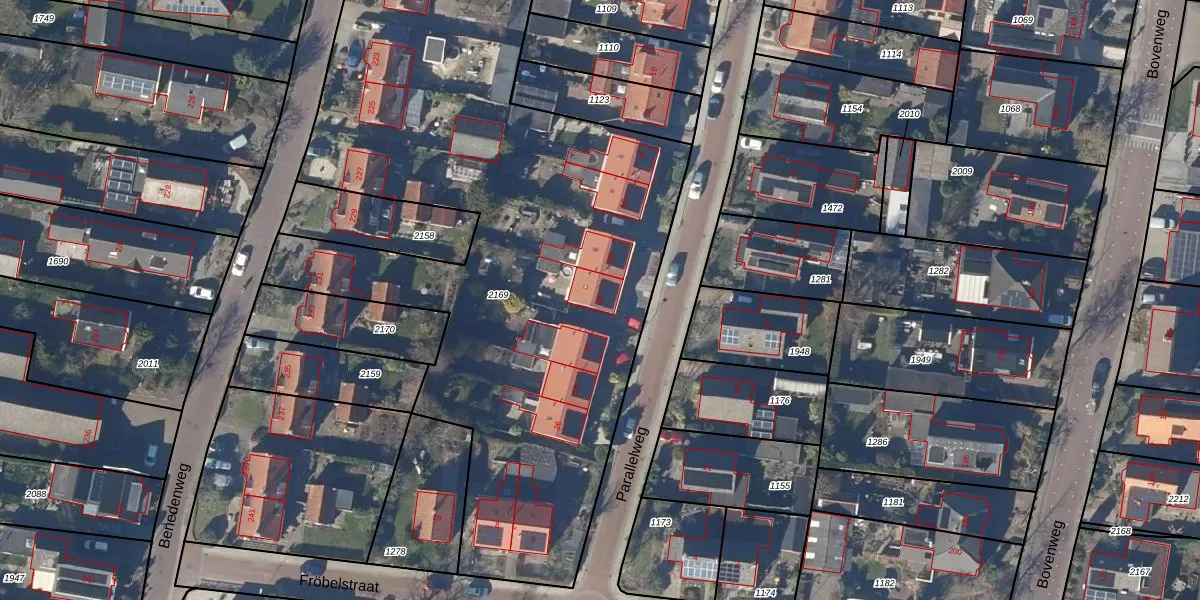 Parallelweg 20 is gelegen op kadastraal perceel PCS00E2169. Deze kadastrale aanduiding is uniek en wordt gebruikt door het Kadaster om eigendomsrechten en andere zakelijke rechten vast te leggen. Het perceel maakt onderdeel uit van de kadastrale gemeente Sint Pancras.