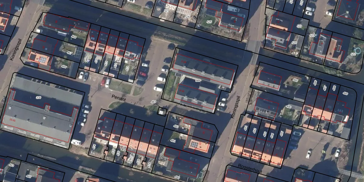 Het perceel waarop Penant 6 staat heeft een oppervlakte van 971 m². Dit is een groot perceel. De perceeloppervlakte wordt geregistreerd door het Kadaster. Gedetailleerde informatie over de maten van dit perceel kunt u vinden in het rapport Kadastrale kaart met maatvoering van Penant 6.
