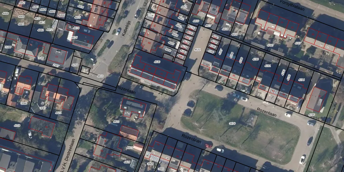 Rozenlaan 21 is gelegen op kadastraal perceel PCS00A4530. Deze kadastrale aanduiding is uniek en wordt gebruikt door het Kadaster om eigendomsrechten en andere zakelijke rechten vast te leggen. Het perceel maakt onderdeel uit van de kadastrale gemeente Sint Pancras.