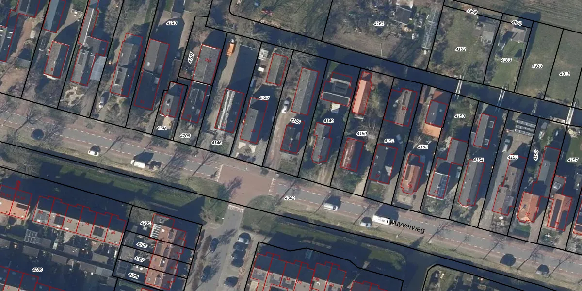 Gebruik de zoekbalk of klik op een perceel voor informatie over de adressen binnen dit perceel.