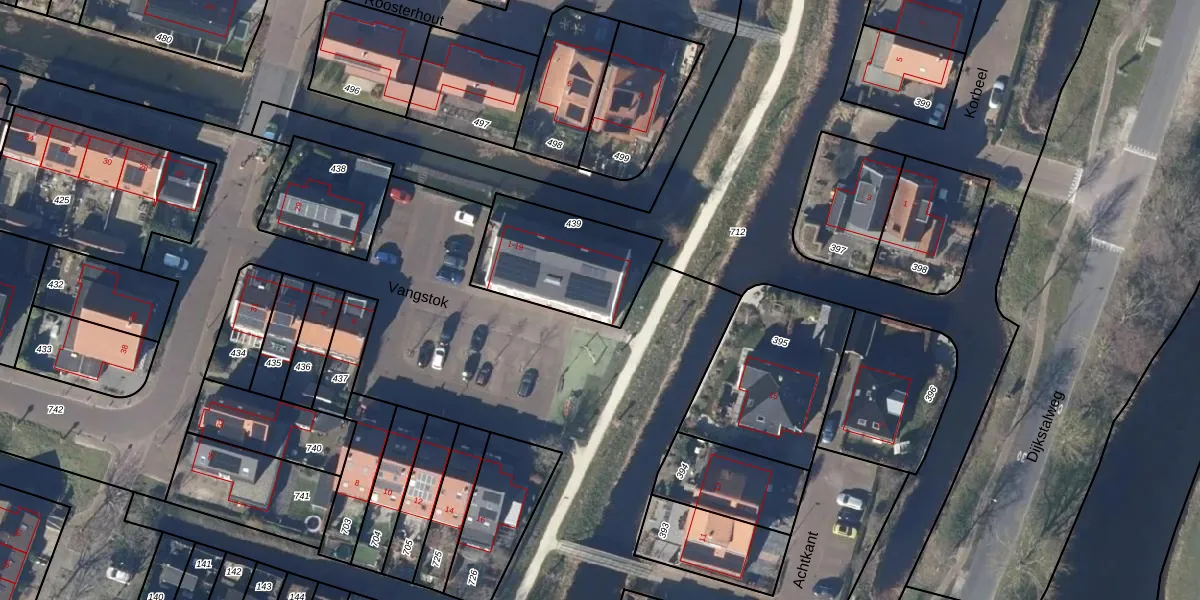 Het perceel waarop Vangstok 11 staat heeft een oppervlakte van 438 m². Dit is een groot perceel. De perceeloppervlakte wordt geregistreerd door het Kadaster. Gedetailleerde informatie over de maten van dit perceel kunt u vinden in het rapport Kadastrale kaart met maatvoering van Vangstok 11.
