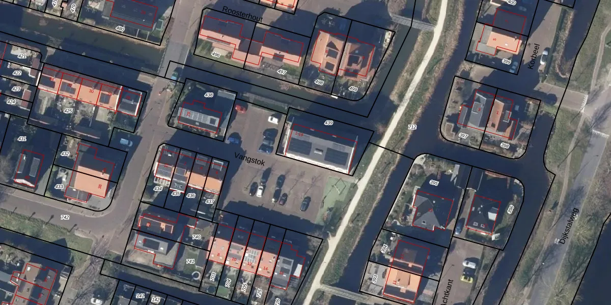 Het perceel waarop Vangstok 15 staat heeft een oppervlakte van 438 m². Dit is een groot perceel. De perceeloppervlakte wordt geregistreerd door het Kadaster. Gedetailleerde informatie over de maten van dit perceel kunt u vinden in het rapport Kadastrale kaart met maatvoering van Vangstok 15.