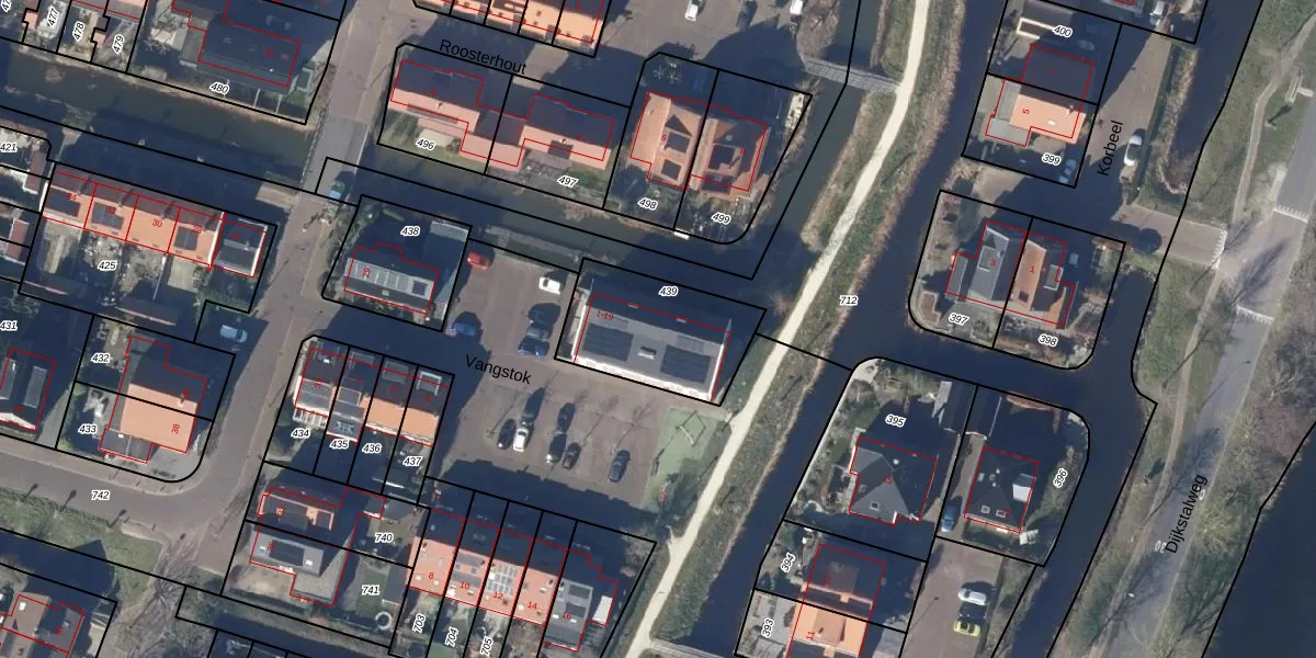 Het perceel waarop Vangstok 5 staat heeft een oppervlakte van 438 m². Dit is een groot perceel. De perceeloppervlakte wordt geregistreerd door het Kadaster. Gedetailleerde informatie over de maten van dit perceel kunt u vinden in het rapport Kadastrale kaart met maatvoering van Vangstok 5.