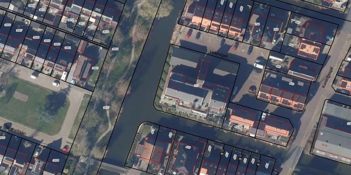 Veldregel 5 is gelegen op kadastraal perceel PCS00H377. Deze kadastrale aanduiding is uniek en wordt gebruikt door het Kadaster om eigendomsrechten en andere zakelijke rechten vast te leggen. Het perceel maakt onderdeel uit van de kadastrale gemeente Sint Pancras.