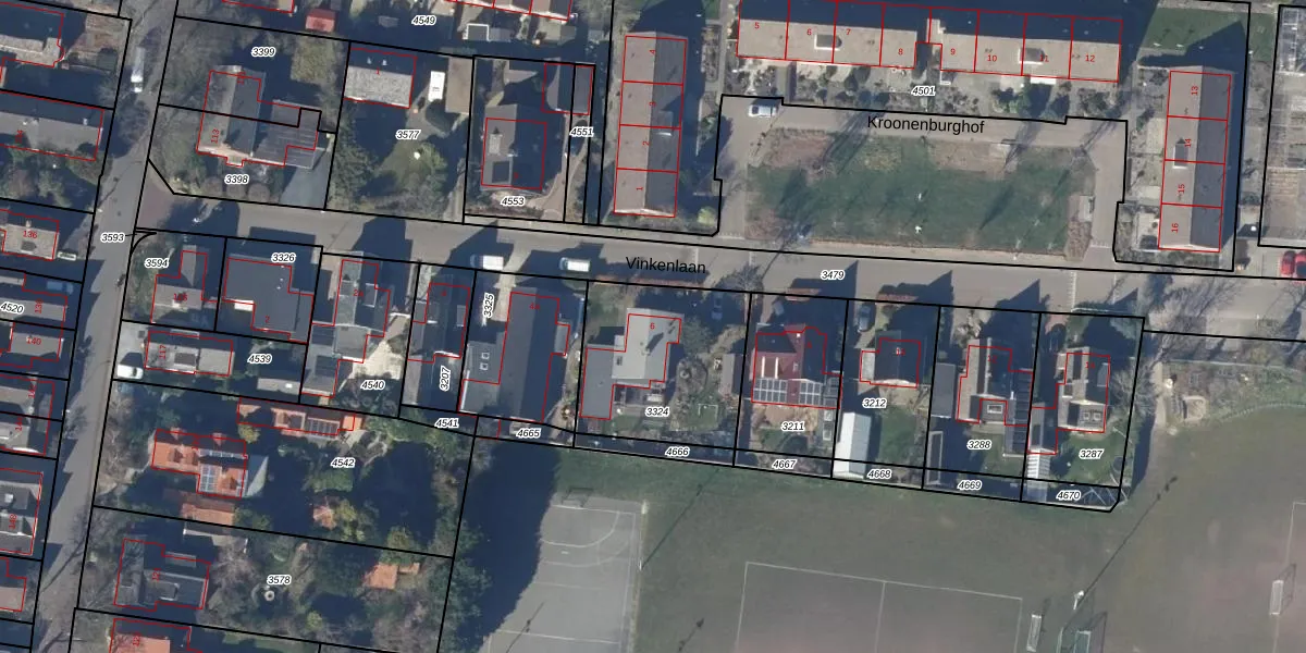 Vinkenlaan 6 is gelegen op kadastraal perceel PCS00A3324. Deze kadastrale aanduiding is uniek en wordt gebruikt door het Kadaster om eigendomsrechten en andere zakelijke rechten vast te leggen. Het perceel maakt onderdeel uit van de kadastrale gemeente Sint Pancras.