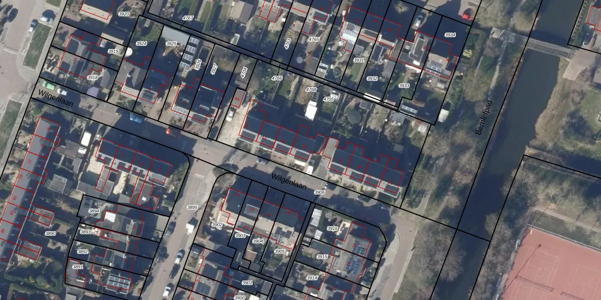 Wilgenlaan 15 is gelegen op kadastraal perceel PCS00A4705. Deze kadastrale aanduiding is uniek en wordt gebruikt door het Kadaster om eigendomsrechten en andere zakelijke rechten vast te leggen. Het perceel maakt onderdeel uit van de kadastrale gemeente Sint Pancras.