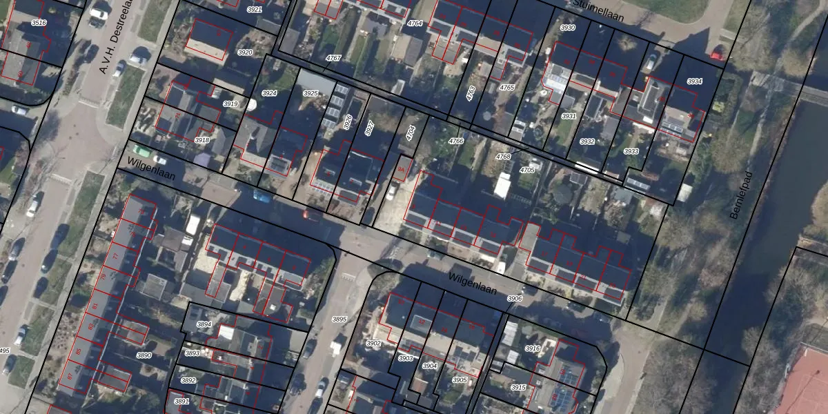 Wilgenlaan 9 is gelegen op kadastraal perceel PCS00A4705. Deze kadastrale aanduiding is uniek en wordt gebruikt door het Kadaster om eigendomsrechten en andere zakelijke rechten vast te leggen. Het perceel maakt onderdeel uit van de kadastrale gemeente Sint Pancras.
