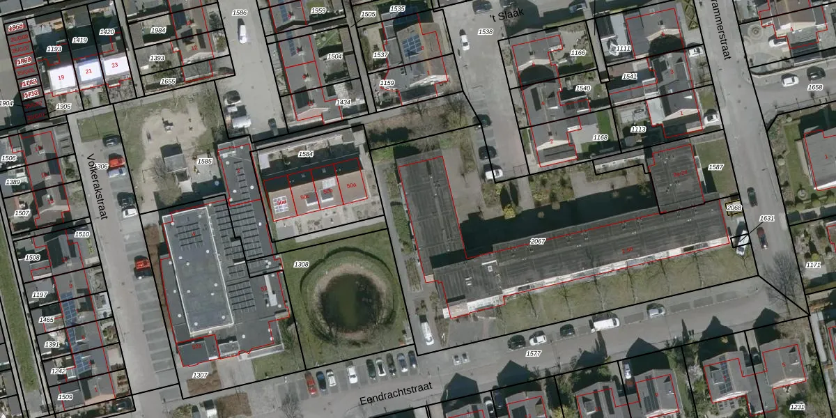 Het perceel waarop Eendrachtstraat 24 staat heeft een oppervlakte van 3026 m². Dit is een zeer groot perceel. De perceeloppervlakte wordt geregistreerd door het Kadaster. Gedetailleerde informatie over de maten van dit perceel kunt u vinden in het rapport Kadastrale kaart met maatvoering van Eendrachtstraat 24.