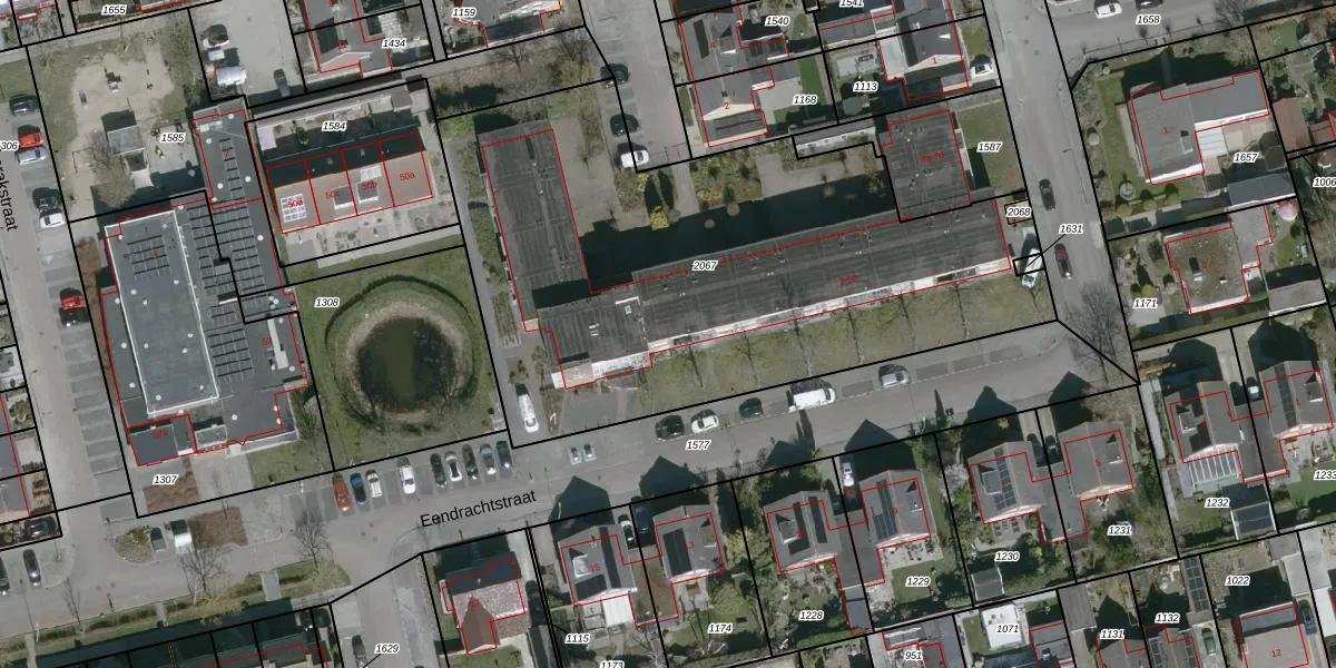 Het perceel waarop Eendrachtstraat 4 staat heeft een oppervlakte van 3026 m². Dit is een zeer groot perceel. De perceeloppervlakte wordt geregistreerd door het Kadaster. Gedetailleerde informatie over de maten van dit perceel kunt u vinden in het rapport Kadastrale kaart met maatvoering van Eendrachtstraat 4.