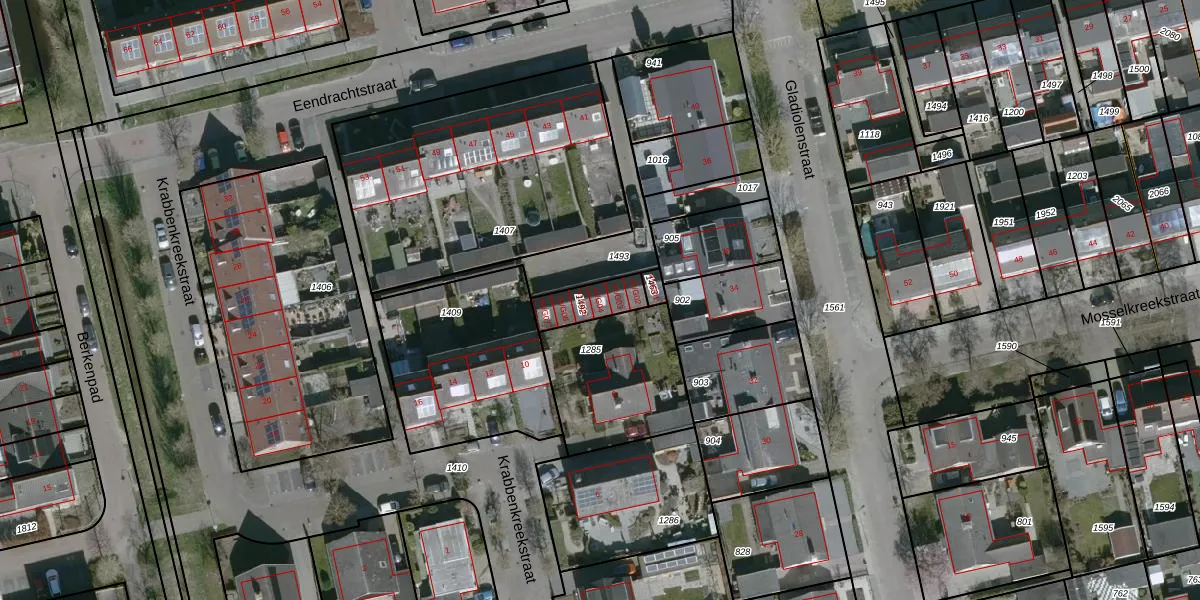 Eendrachtstraat 41-G04 is gelegen op kadastraal perceel PLL00F1492. Deze kadastrale aanduiding is uniek en wordt gebruikt door het Kadaster om eigendomsrechten en andere zakelijke rechten vast te leggen. Het perceel maakt onderdeel uit van de kadastrale gemeente Sint Philipsland.