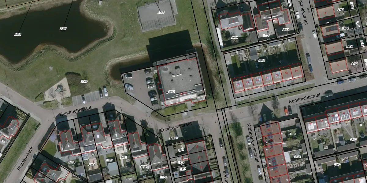 Eendrachtstraat 92 is gelegen op kadastraal perceel PLL00F1912. Deze kadastrale aanduiding is uniek en wordt gebruikt door het Kadaster om eigendomsrechten en andere zakelijke rechten vast te leggen. Het perceel maakt onderdeel uit van de kadastrale gemeente Sint Philipsland.