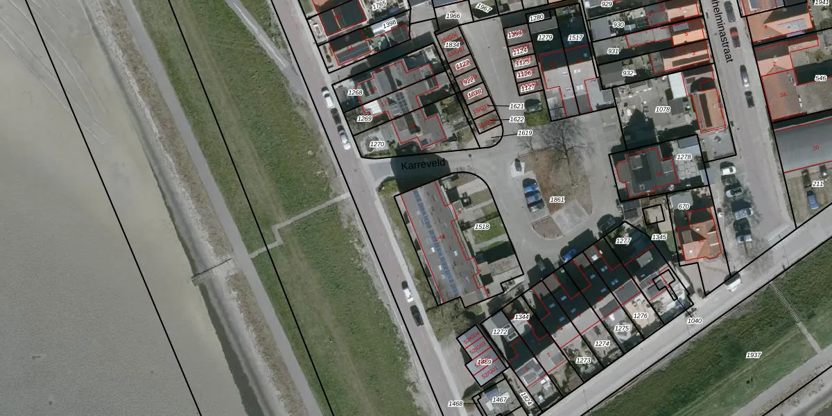 Het perceel waarop Karreveld 1-a staat heeft een oppervlakte van 647 m². Dit is een groot perceel. De perceeloppervlakte wordt geregistreerd door het Kadaster. Gedetailleerde informatie over de maten van dit perceel kunt u vinden in het rapport Kadastrale kaart met maatvoering van Karreveld 1-a.