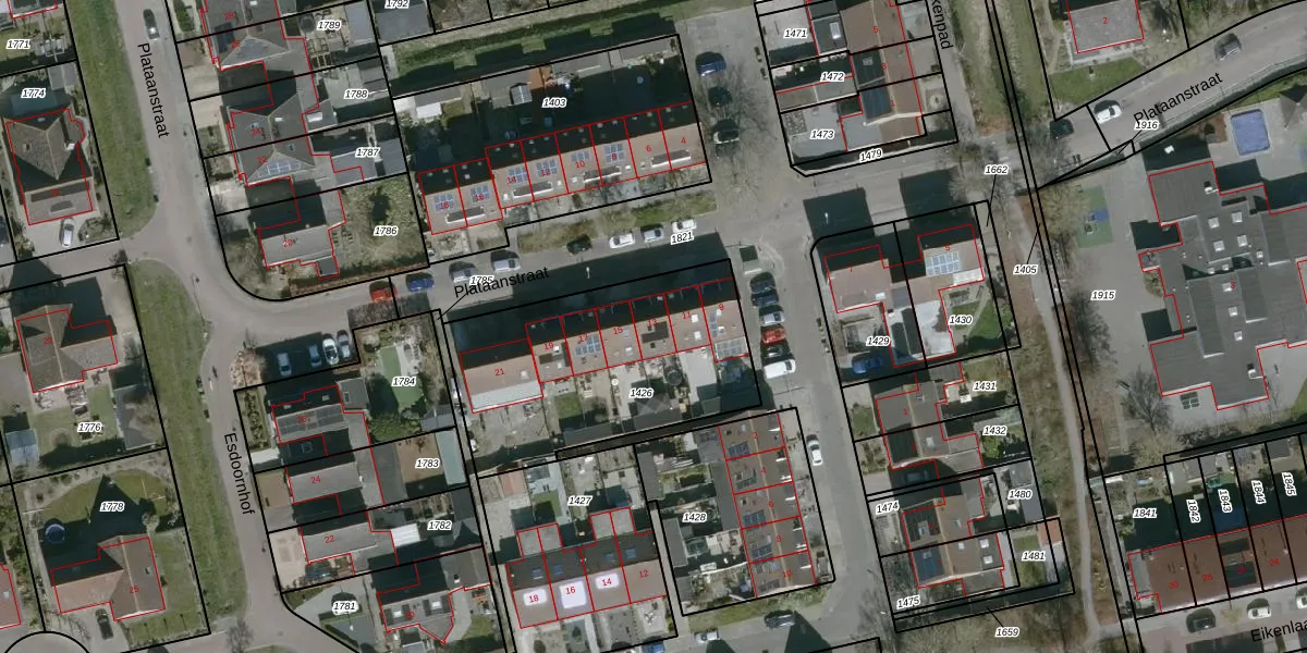 Plataanstraat 13 is gelegen op kadastraal perceel PLL00F1426. Deze kadastrale aanduiding is uniek en wordt gebruikt door het Kadaster om eigendomsrechten en andere zakelijke rechten vast te leggen. Het perceel maakt onderdeel uit van de kadastrale gemeente Sint Philipsland.