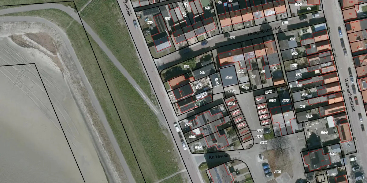 Het perceel waarop Zuiddijk 56 staat heeft een oppervlakte van 176 m². Dit is een middelgroot perceel. De perceeloppervlakte wordt geregistreerd door het Kadaster. Gedetailleerde informatie over de maten van dit perceel kunt u vinden in het rapport Kadastrale kaart met maatvoering van Zuiddijk 56.