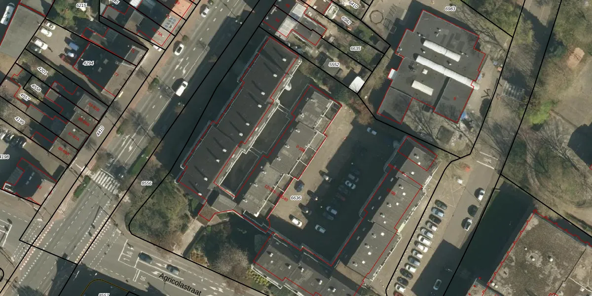 Het perceel waarop Agricolastraat 102 staat heeft een oppervlakte van 6180 m². Dit is een zeer groot perceel. De perceeloppervlakte wordt geregistreerd door het Kadaster. Gedetailleerde informatie over de maten van dit perceel kunt u vinden in het rapport Kadastrale kaart met maatvoering van Agricolastraat 102.
