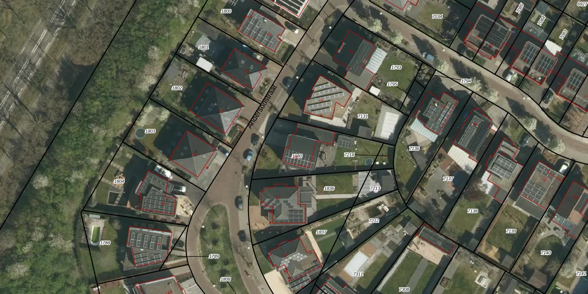 Het perceel waarop Andersonstraat 19 staat heeft een oppervlakte van 615 m². Dit is een groot perceel. De perceeloppervlakte wordt geregistreerd door het Kadaster. Gedetailleerde informatie over de maten van dit perceel kunt u vinden in het rapport Kadastrale kaart met maatvoering van Andersonstraat 19.