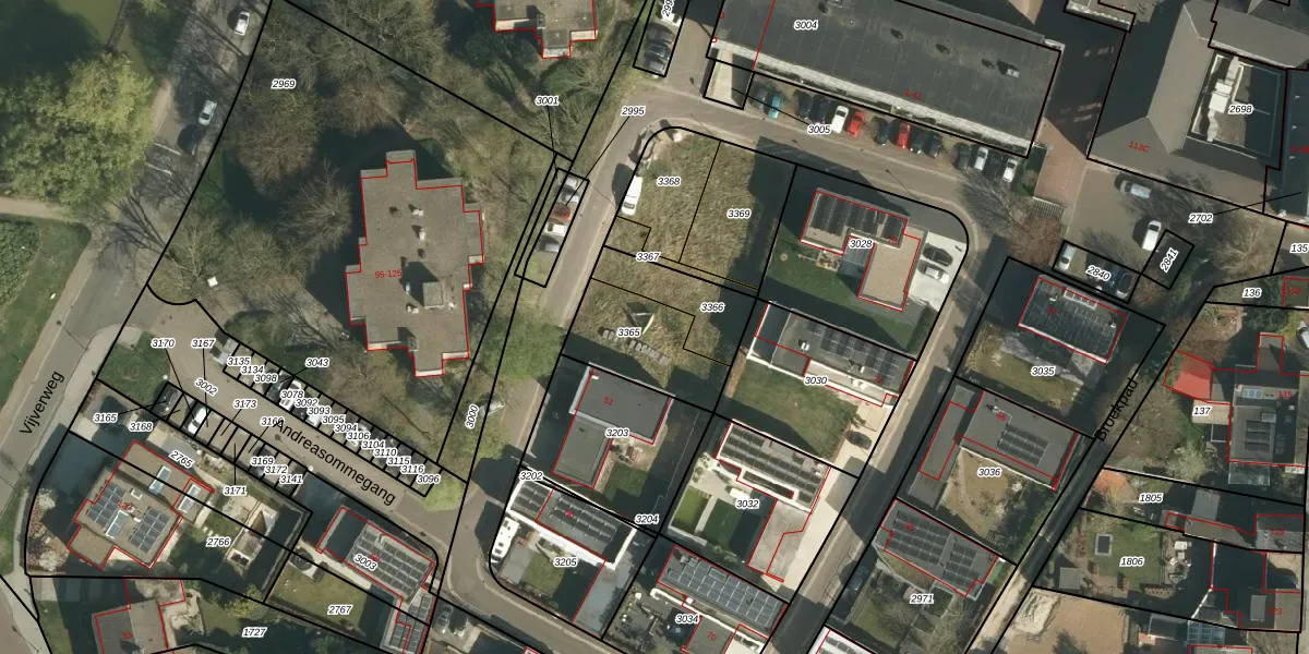 Andreasommegang 52 is gelegen op kadastraal perceel STD00G3365. Deze kadastrale aanduiding is uniek en wordt gebruikt door het Kadaster om eigendomsrechten en andere zakelijke rechten vast te leggen. Het perceel maakt onderdeel uit van de kadastrale gemeente Sittard.