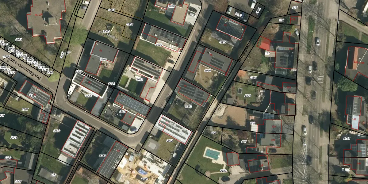 Andreasommegang 65 is gelegen op kadastraal perceel STD00G2971. Deze kadastrale aanduiding is uniek en wordt gebruikt door het Kadaster om eigendomsrechten en andere zakelijke rechten vast te leggen. Het perceel maakt onderdeel uit van de kadastrale gemeente Sittard.