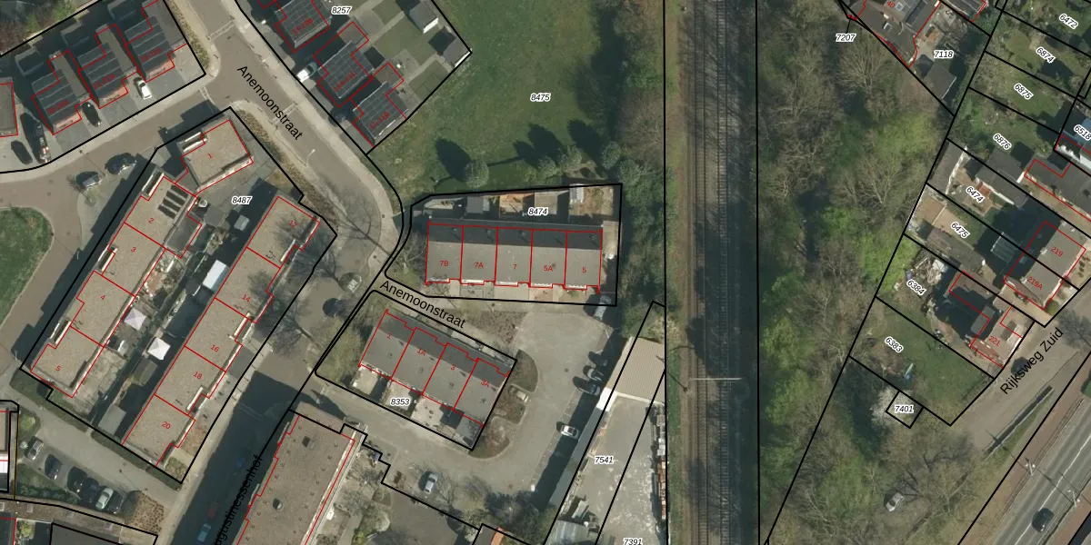 Anemoonstraat 5-A is gelegen op kadastraal perceel STD00D8474. Deze kadastrale aanduiding is uniek en wordt gebruikt door het Kadaster om eigendomsrechten en andere zakelijke rechten vast te leggen. Het perceel maakt onderdeel uit van de kadastrale gemeente Sittard.