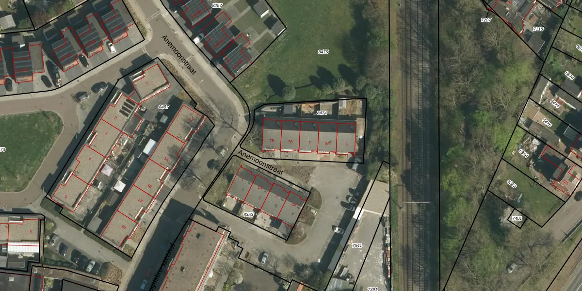 Anemoonstraat 7-A is gelegen op kadastraal perceel STD00D8474. Deze kadastrale aanduiding is uniek en wordt gebruikt door het Kadaster om eigendomsrechten en andere zakelijke rechten vast te leggen. Het perceel maakt onderdeel uit van de kadastrale gemeente Sittard.