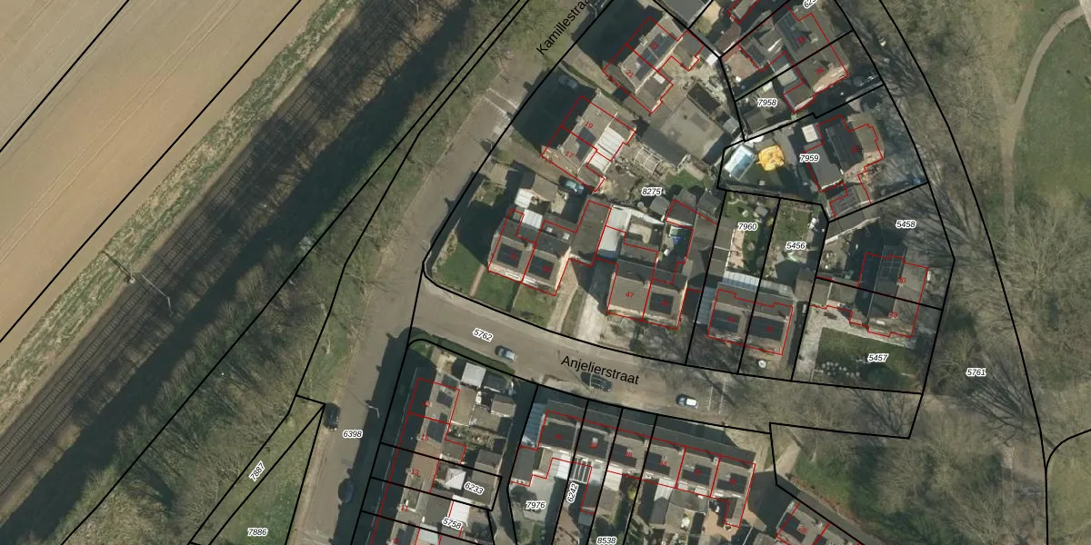 Het perceel waarop Anjelierstraat 49 staat heeft een oppervlakte van 2483 m². Dit is een zeer groot perceel. De perceeloppervlakte wordt geregistreerd door het Kadaster. Gedetailleerde informatie over de maten van dit perceel kunt u vinden in het rapport Kadastrale kaart met maatvoering van Anjelierstraat 49.