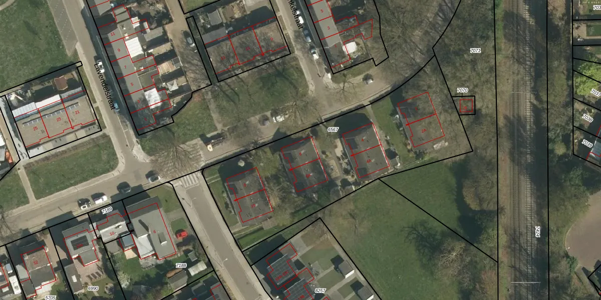 Het perceel waarop Anjelierstraat 6 staat heeft een oppervlakte van 2365 m². Dit is een zeer groot perceel. De perceeloppervlakte wordt geregistreerd door het Kadaster. Gedetailleerde informatie over de maten van dit perceel kunt u vinden in het rapport Kadastrale kaart met maatvoering van Anjelierstraat 6.