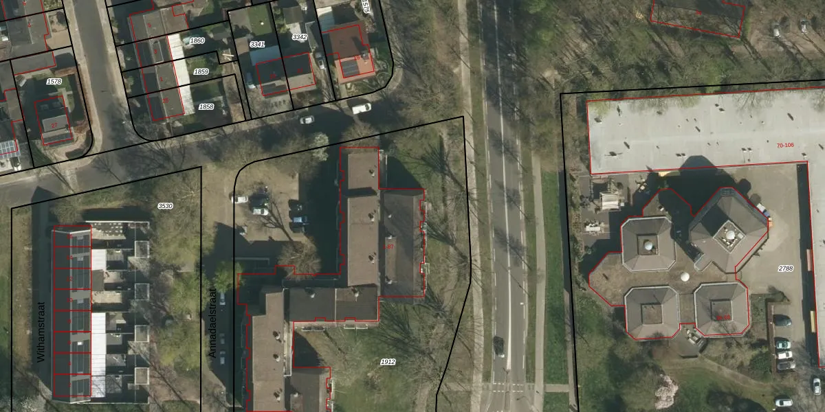 Het perceel waarop Annadaelstraat 53 staat heeft een oppervlakte van 3915 m². Dit is een zeer groot perceel. De perceeloppervlakte wordt geregistreerd door het Kadaster. Gedetailleerde informatie over de maten van dit perceel kunt u vinden in het rapport Kadastrale kaart met maatvoering van Annadaelstraat 53.